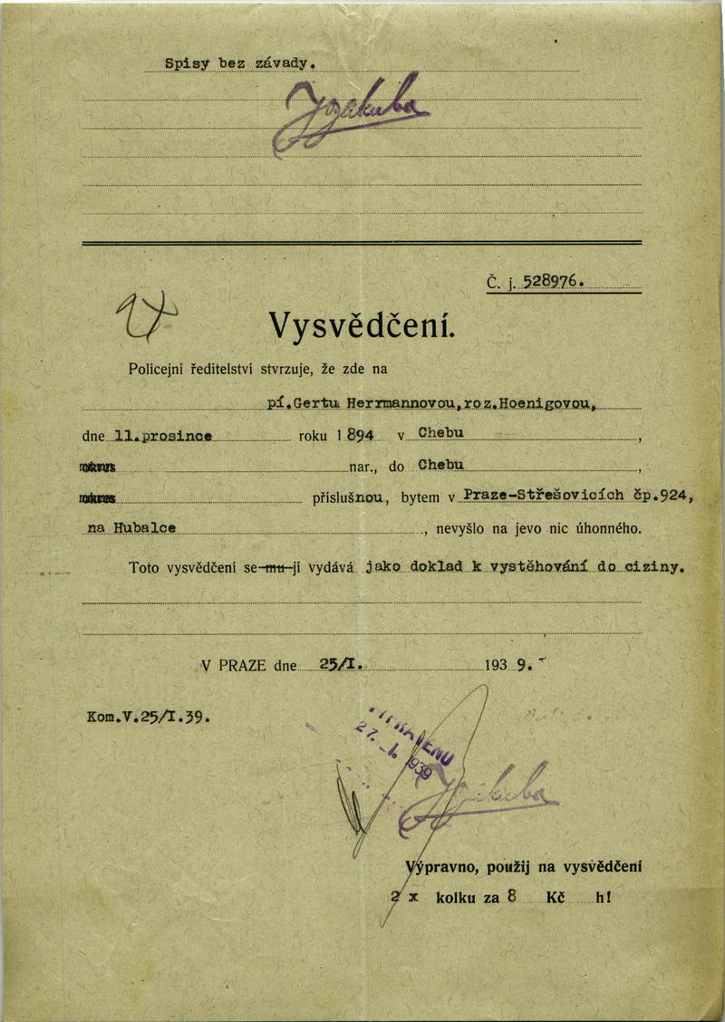 Národní archiv Praha > Policejní ředitelství v Praze > 1931-1940 > H > Herrmannová Gerta