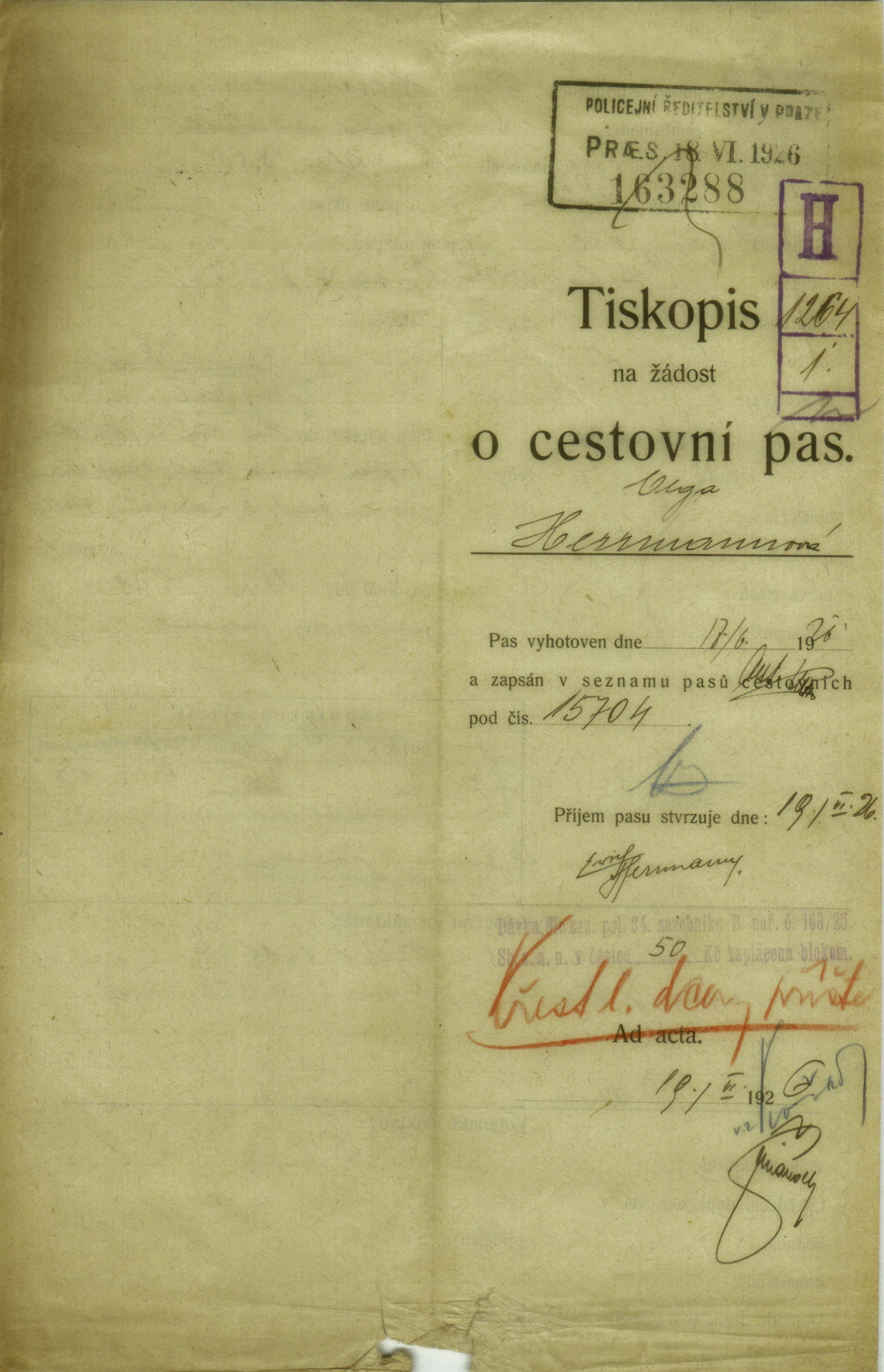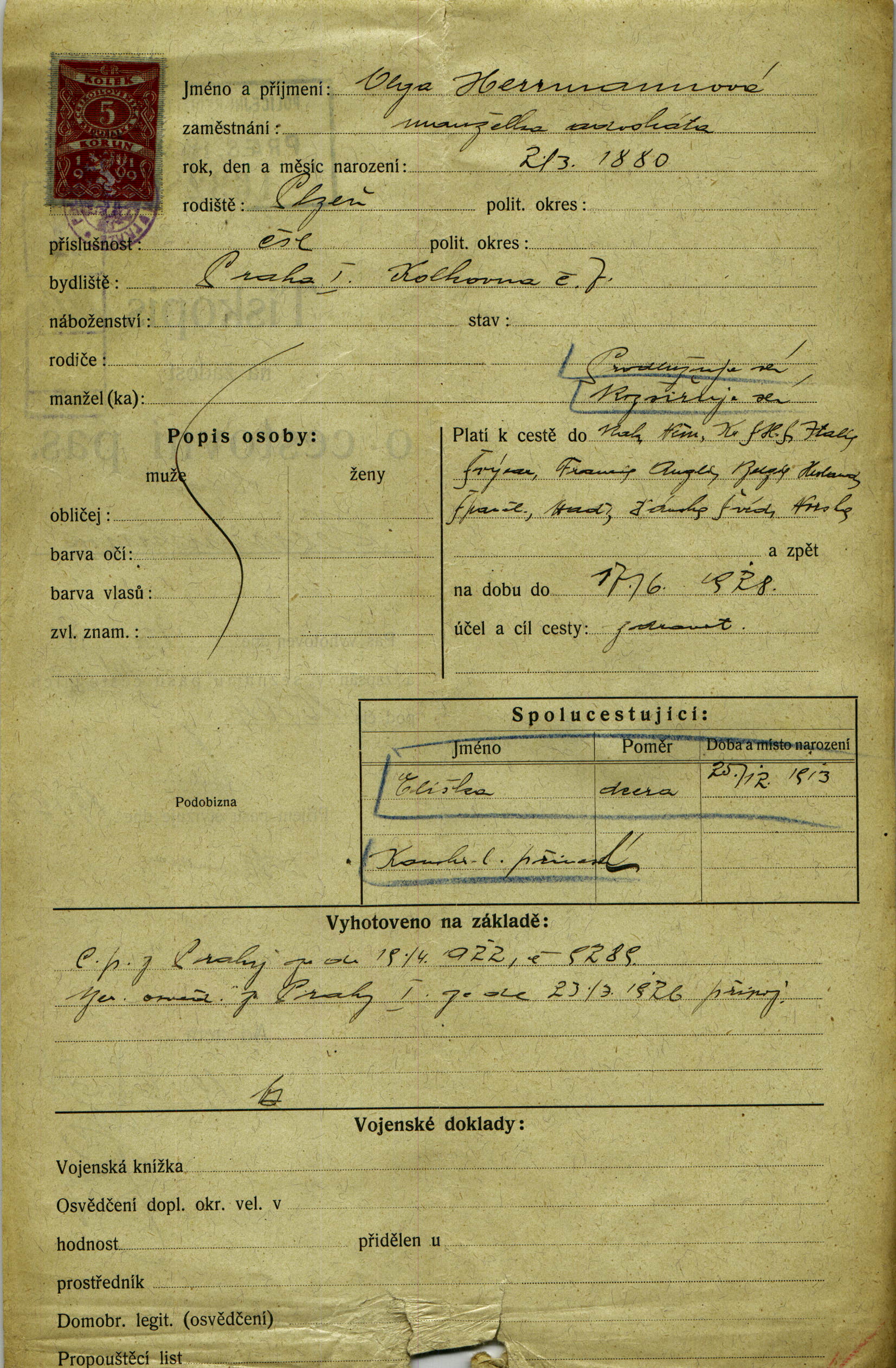 Herrmannová Olga: Žádost o připsání dítěte do cestovního pasu