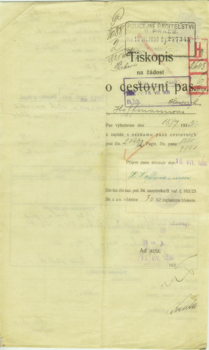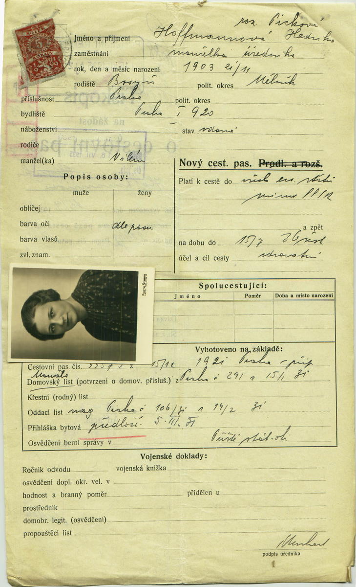 Národní archiv Praha > Policejní ředitelství v Praze > 1931-1940 > H > Hoffmannová Hedvika