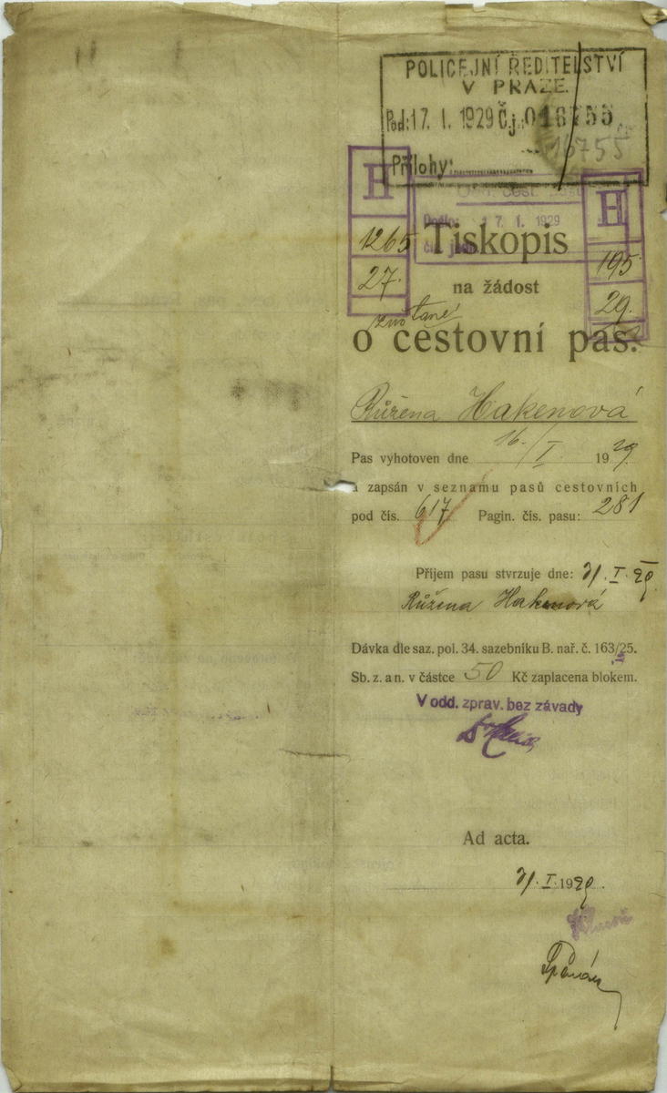 Národní archiv Praha > Policejní ředitelství v Praze > 1931-1940 > H > Hakenová Růžena