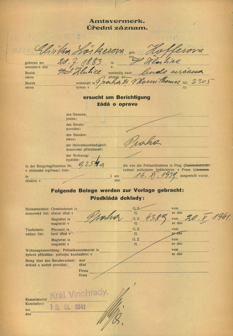 Lörkenová Eliška: Žádost o opravu v občanské legitimaci