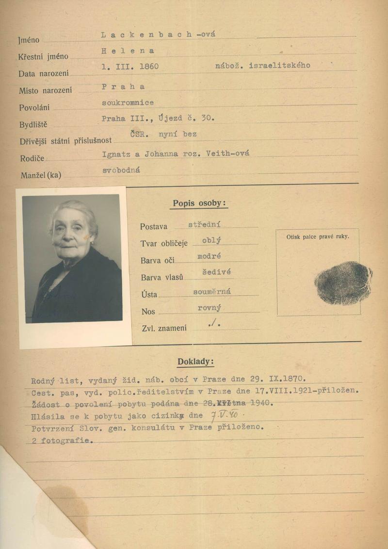 Lackenbachová Helena: Žádost o vydání občanské legitimace