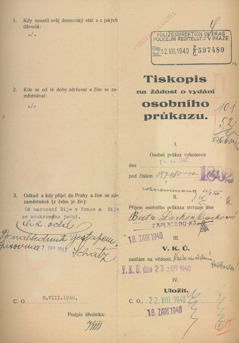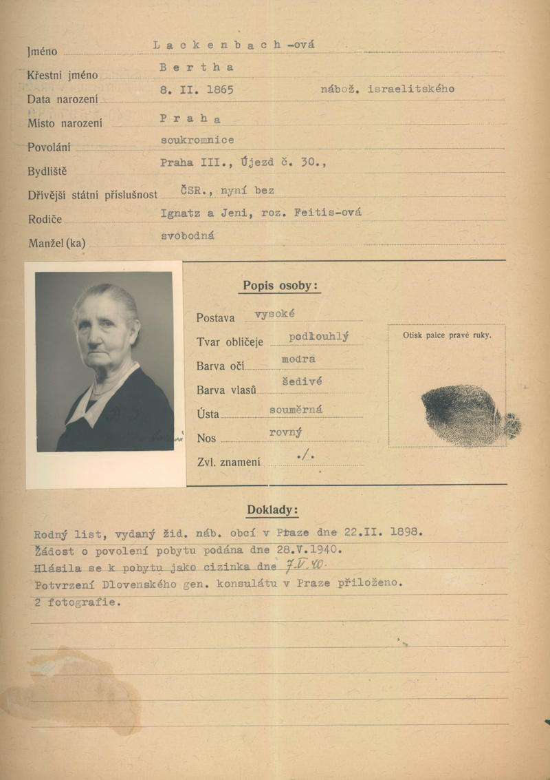 Lackenbachová Berta: Žádost o vydání občanské legitimace