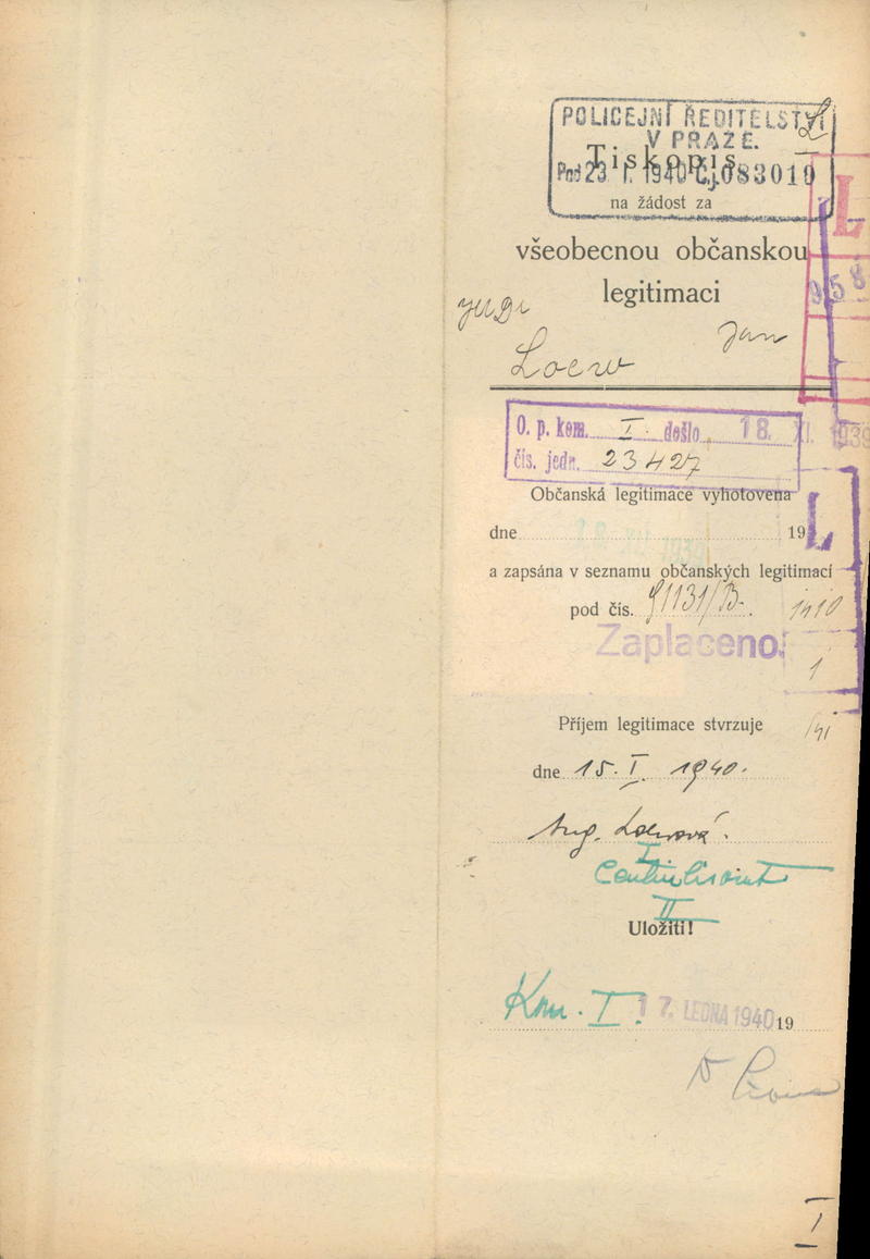 Löw Hanuš: Žádost o vydání občanské legitimace
