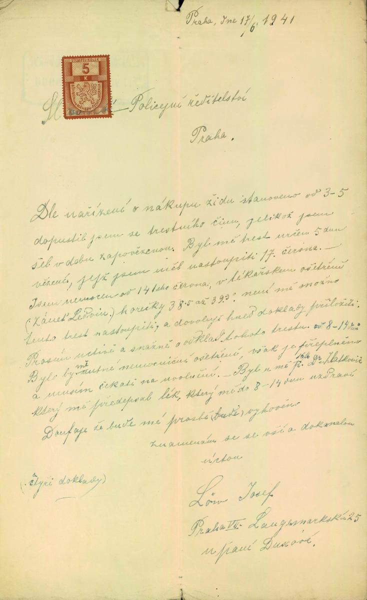 Löw Josef: Žádost o odklad nástupu trestu
