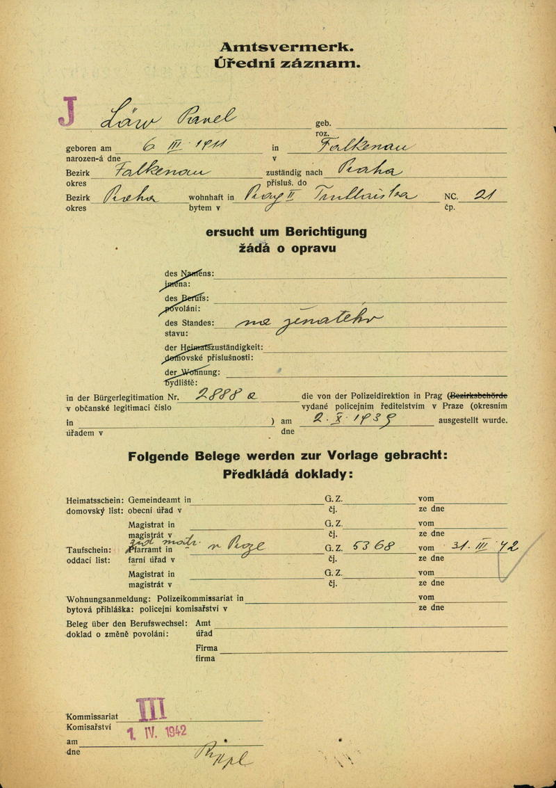 Löw Pavel: Žádost o opravu v občanské legitimaci