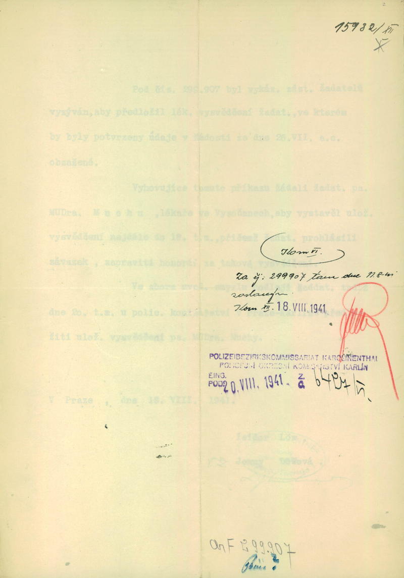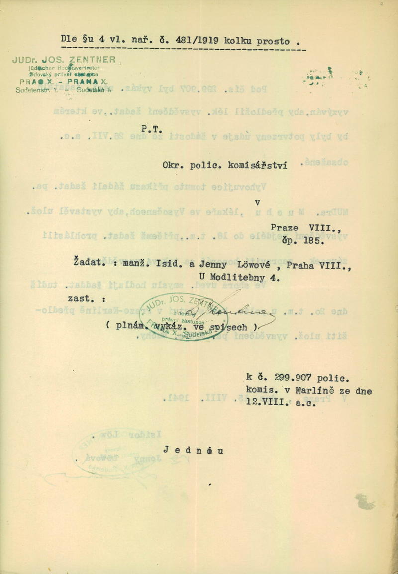 Löw Isidor: Zpráva o žádosti k povolení pobytu