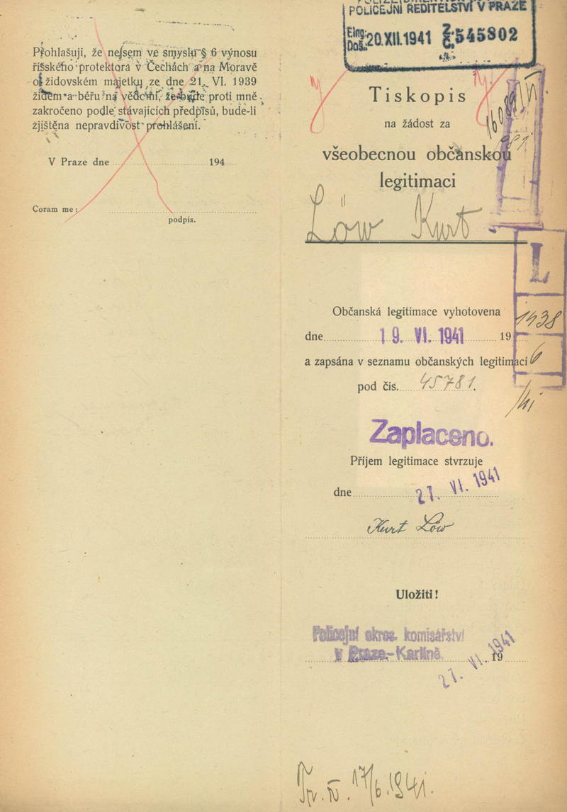 Národní archiv Praha > Policejní ředitelství v Praze > 1941-1950 > L > Löw Kurt