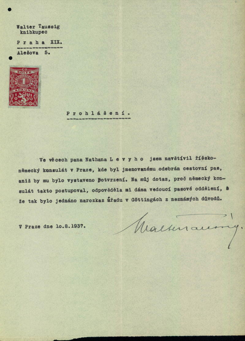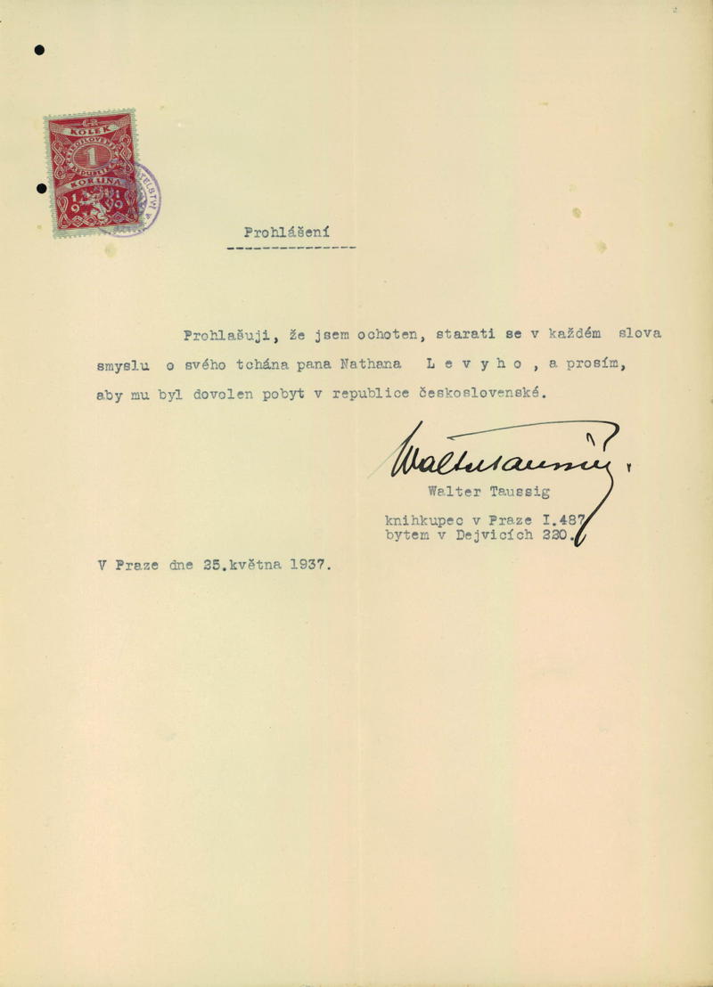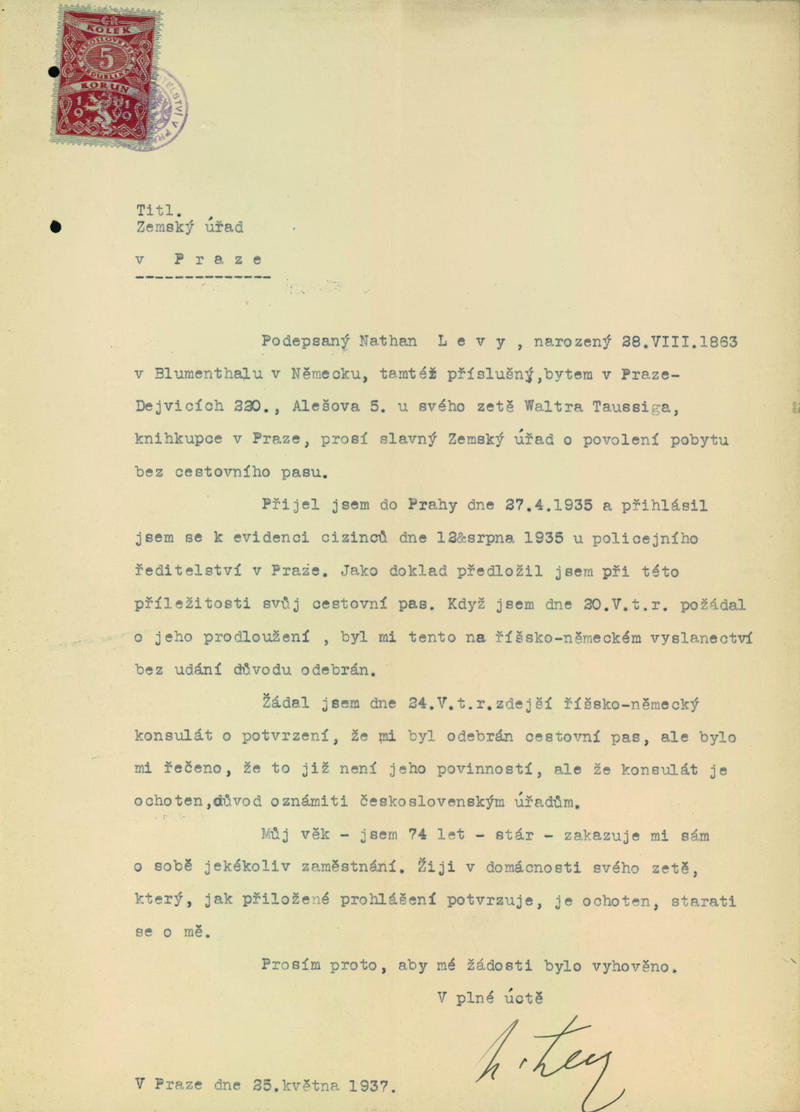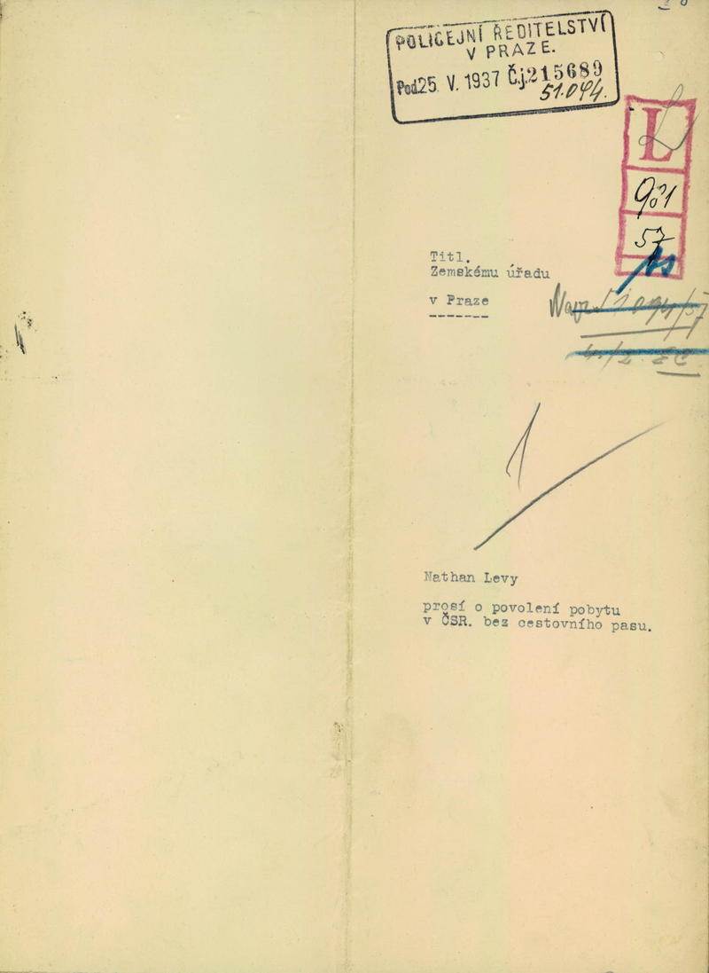 Lewy Nathan: Žádost o povolení pobytu bez cestovního pasu