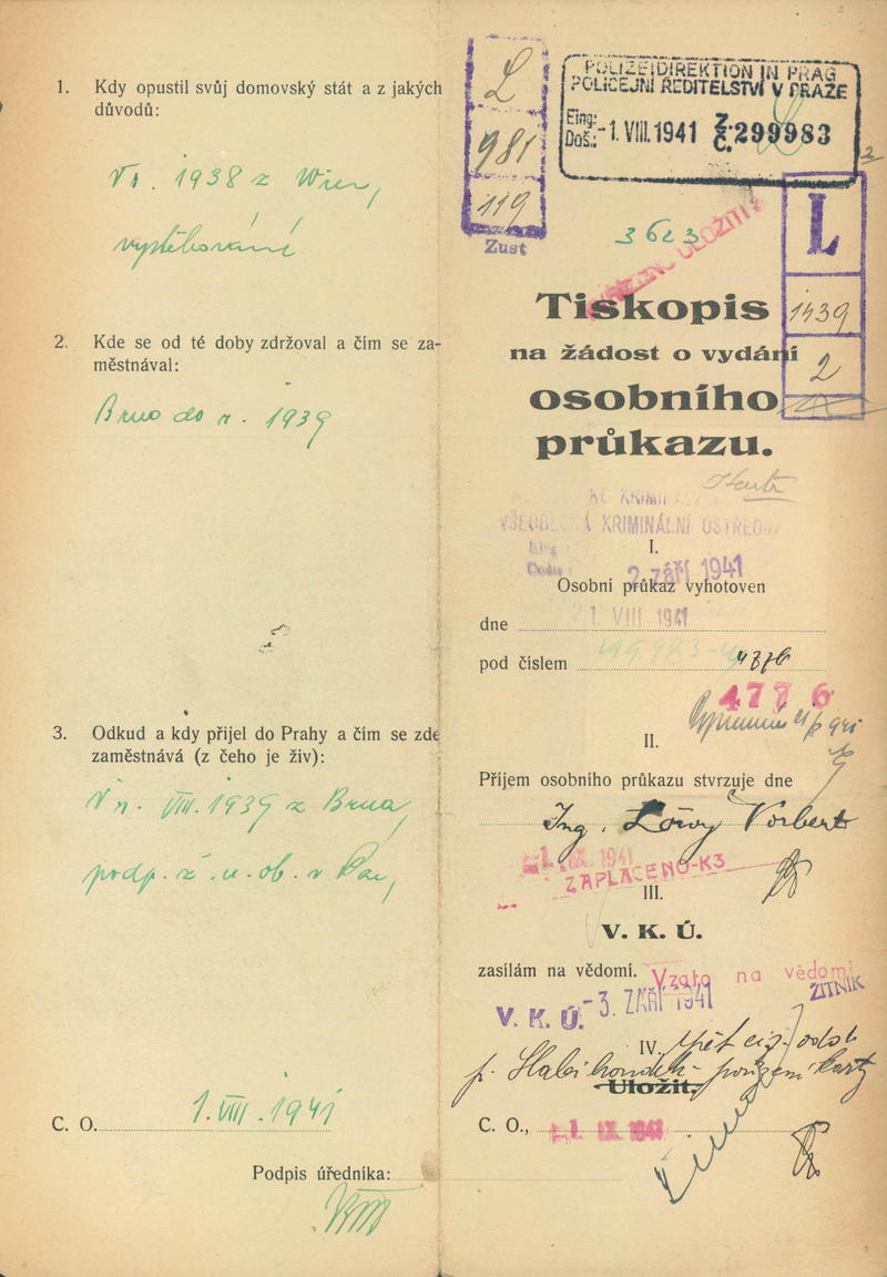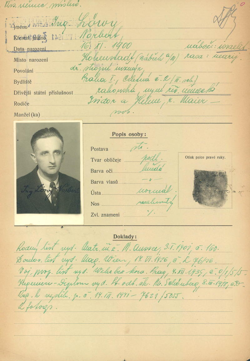 Löwy Norbert: Žádost o vydání občanské legitimace