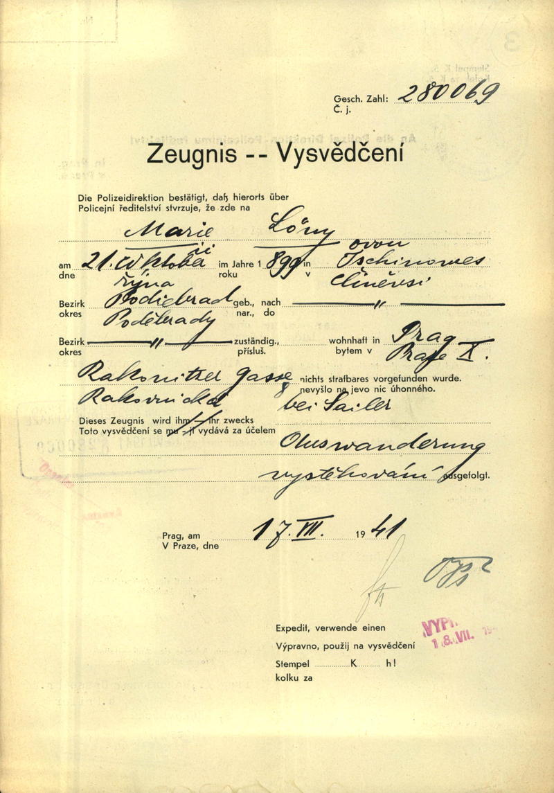 Löwová Marie: Vysvědčení zachovalosti