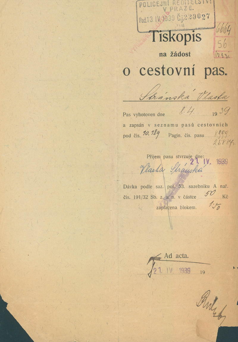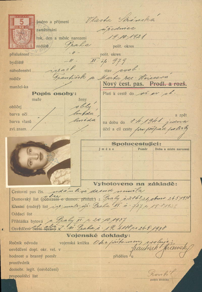 Löwenbeinová Vlasta: Žádost o vydání cestovního pasu