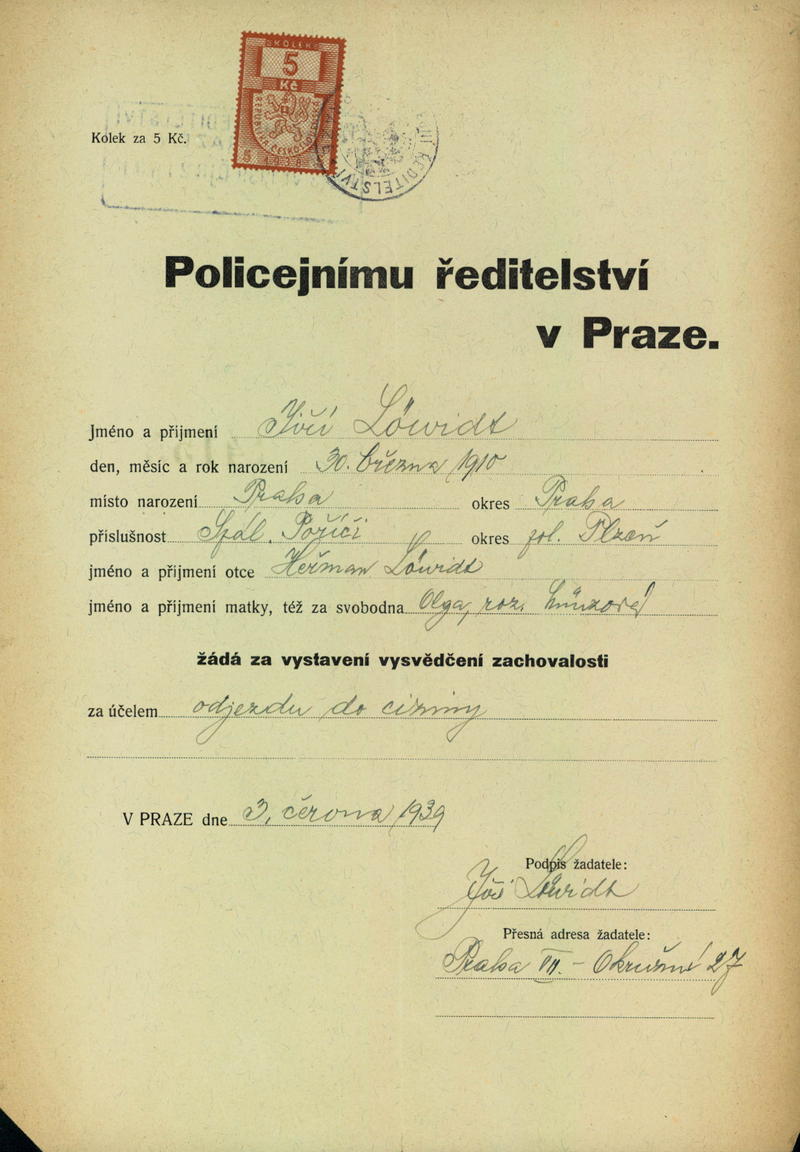 Löwidt Jiří: Žádost o vystavení vysvědčení zachovalosti