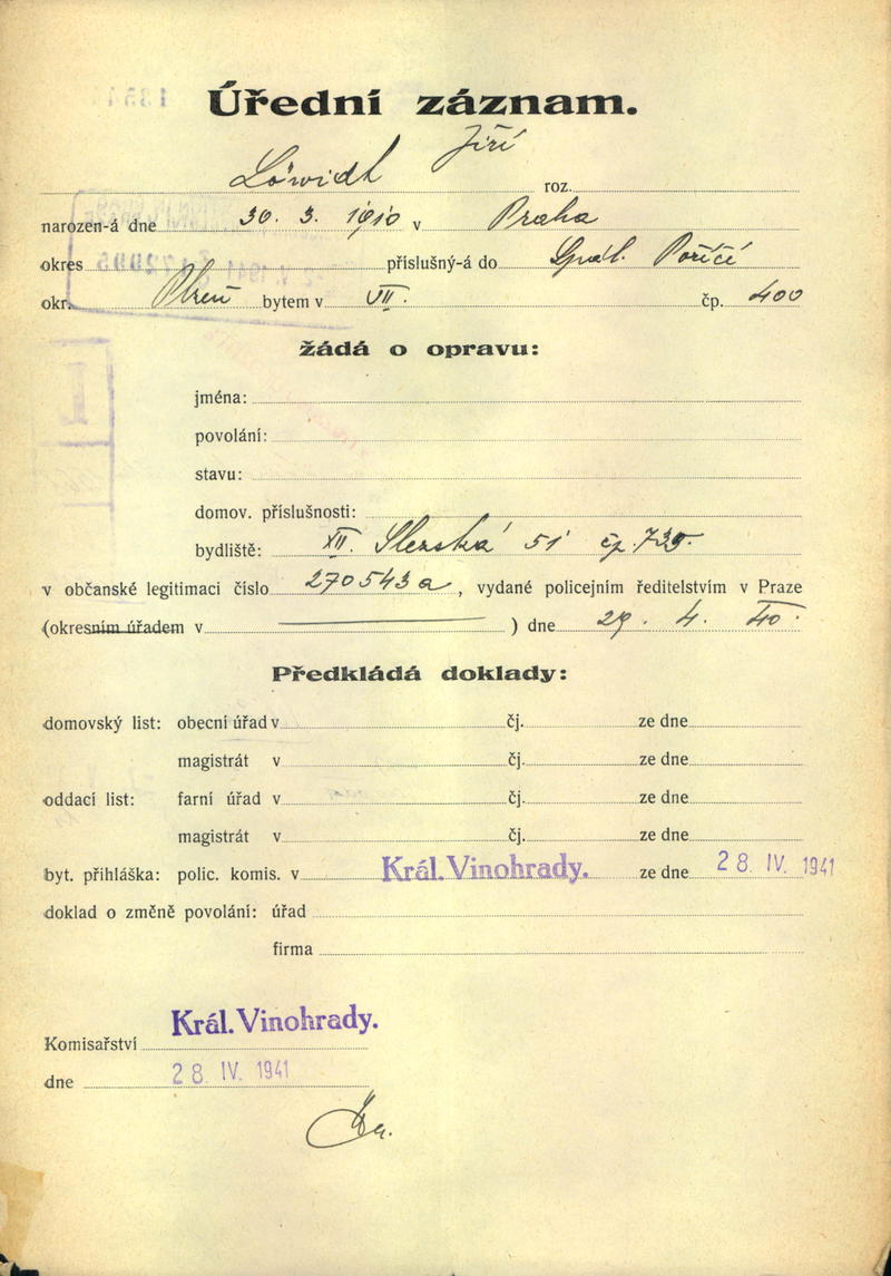 Löwidt Jiří: Žádost o opravu v občanské legitimaci