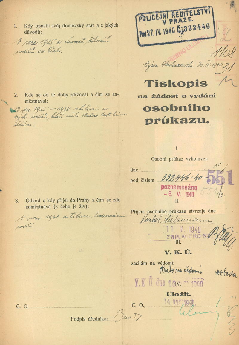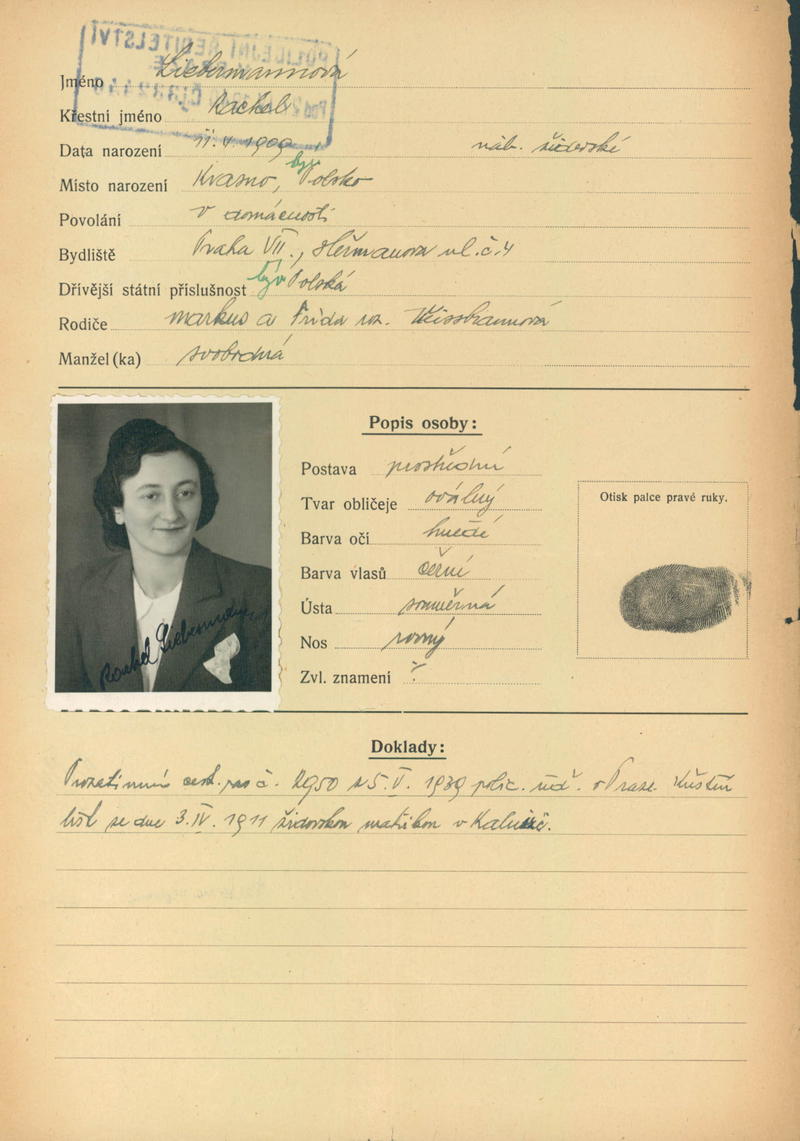 Liebermannová Rachel: Žádost o vydání občanské legitimace