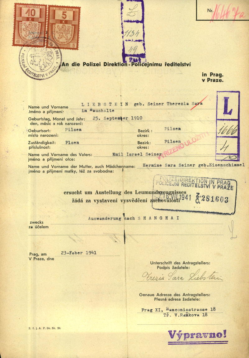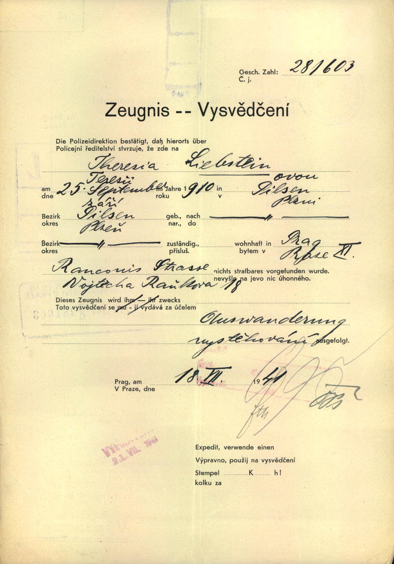 Liebsteinová Terezie: Vysvědčení zachovalosti