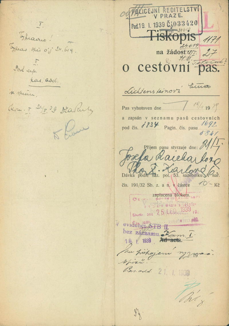 Lichtensteinová Ema: Žádost o vydání cestovního pasu