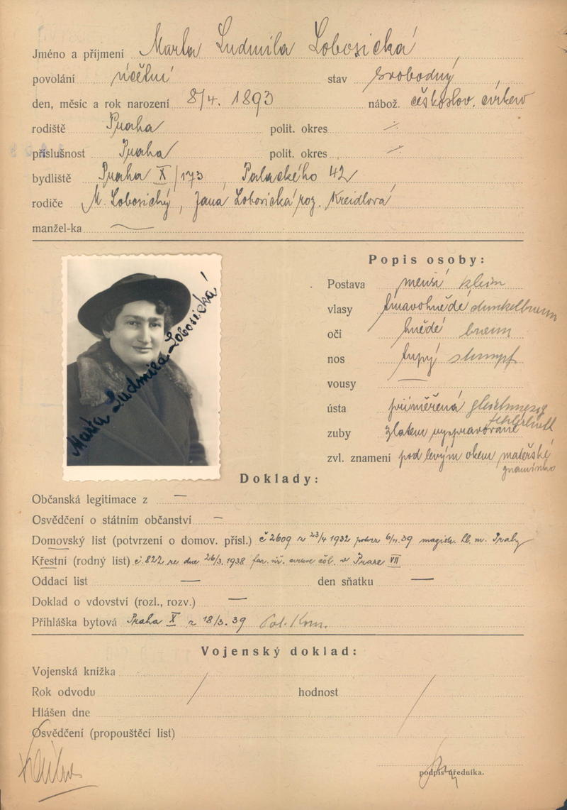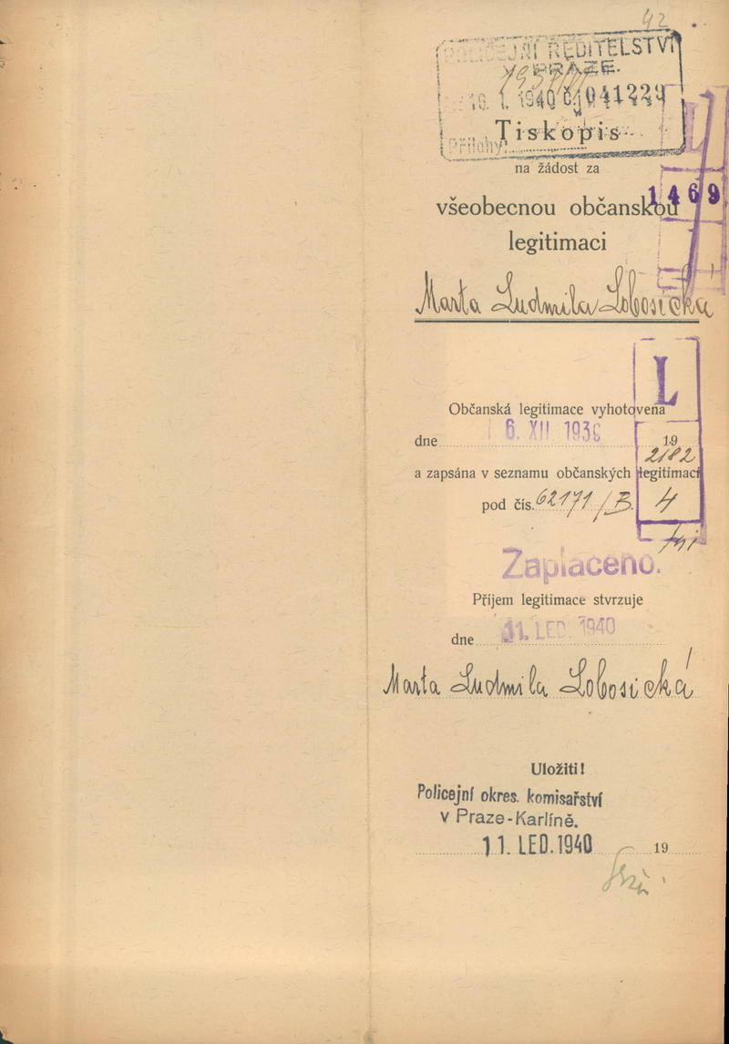 Lobosická Marta: Žádost o vydání občanské legitimace