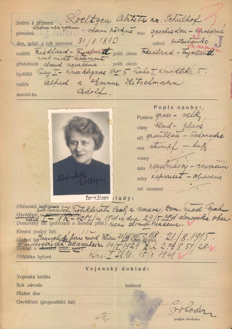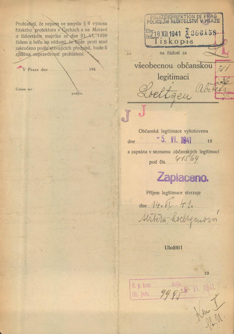 Loeltgenová Eliška: Žádost o vydání občanské legitimace