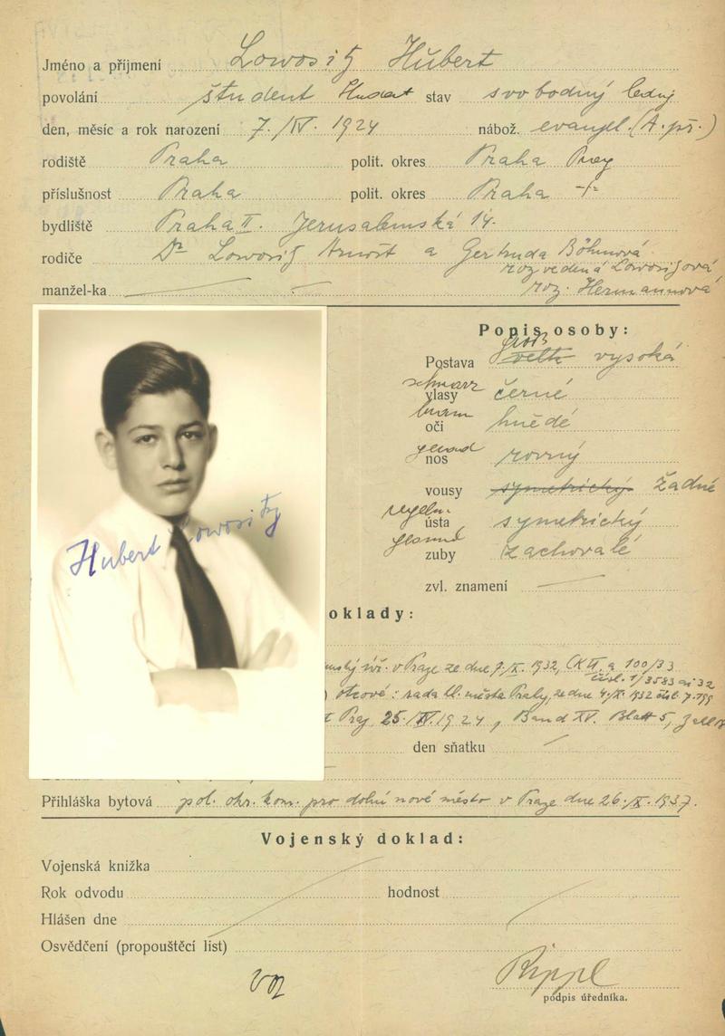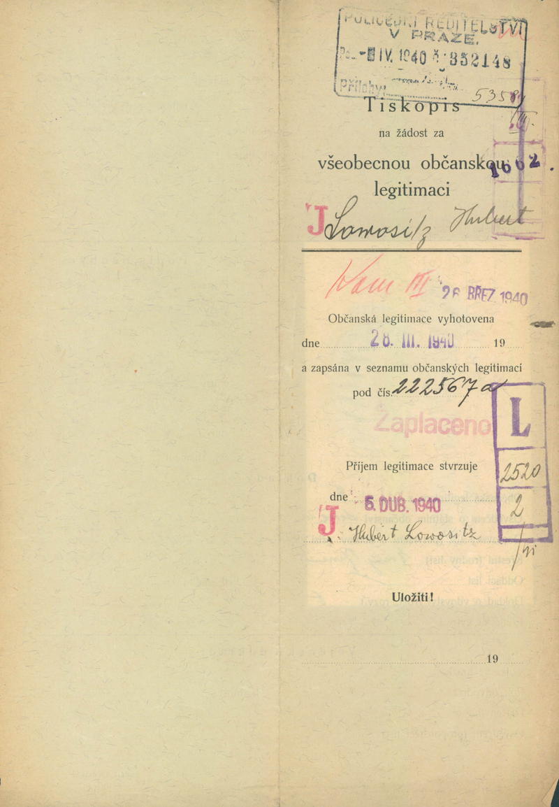 Lowositz Hubert: Žádost o vydání občanské legitimace