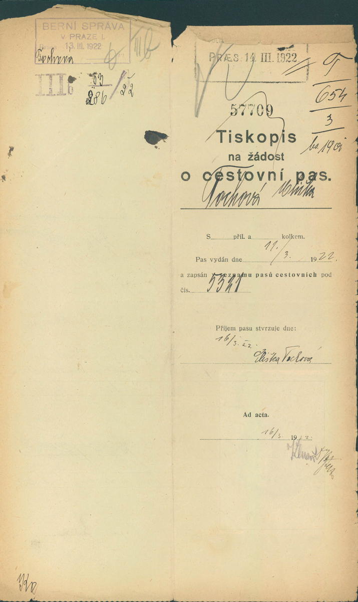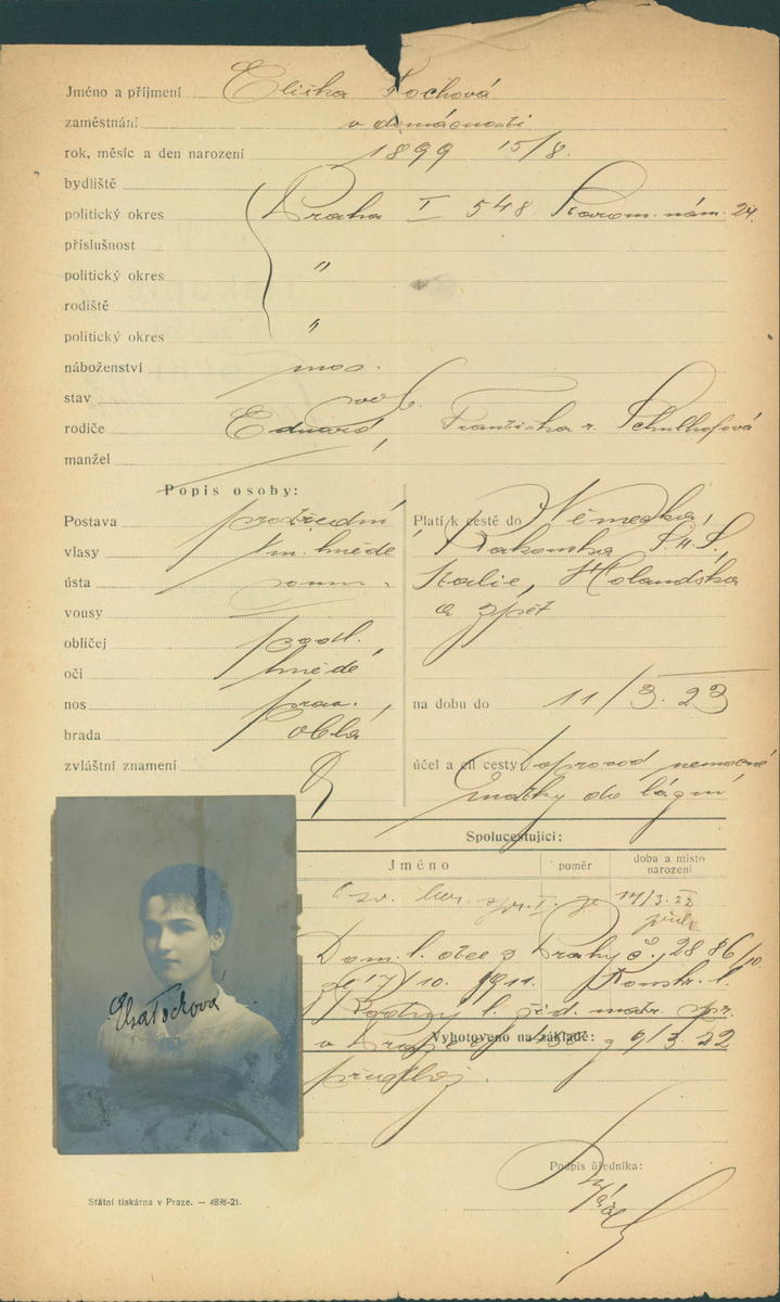 Lutzová Elsa: Žádost o vydání cestovního pasu