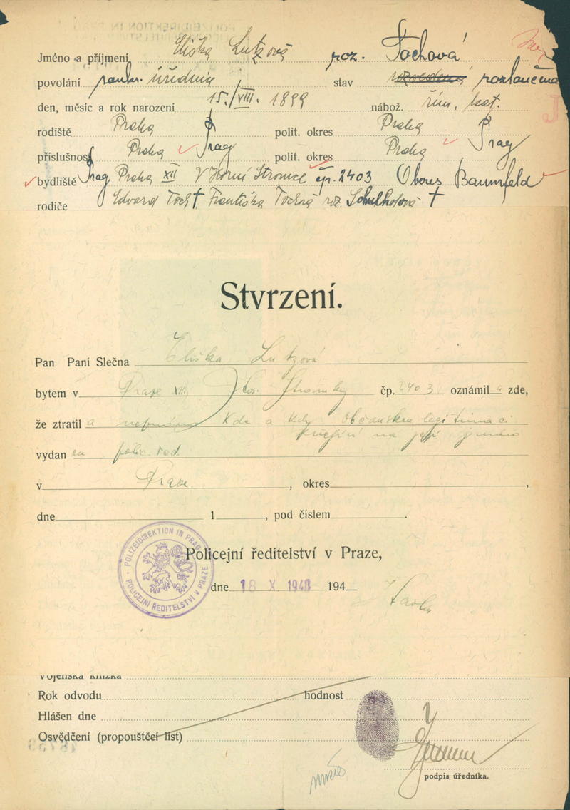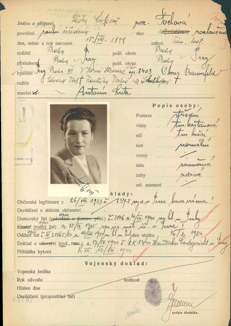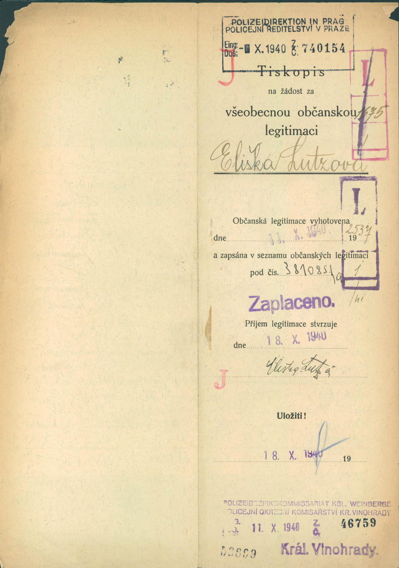 Lutzová Elsa: Žádost o vydání občanské legitiamce