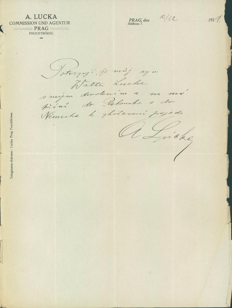 Lucka Walter: Potvrzení o zahraniční cestě