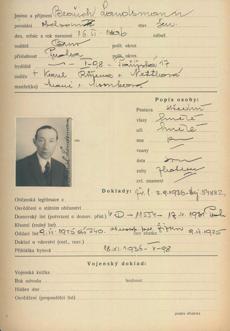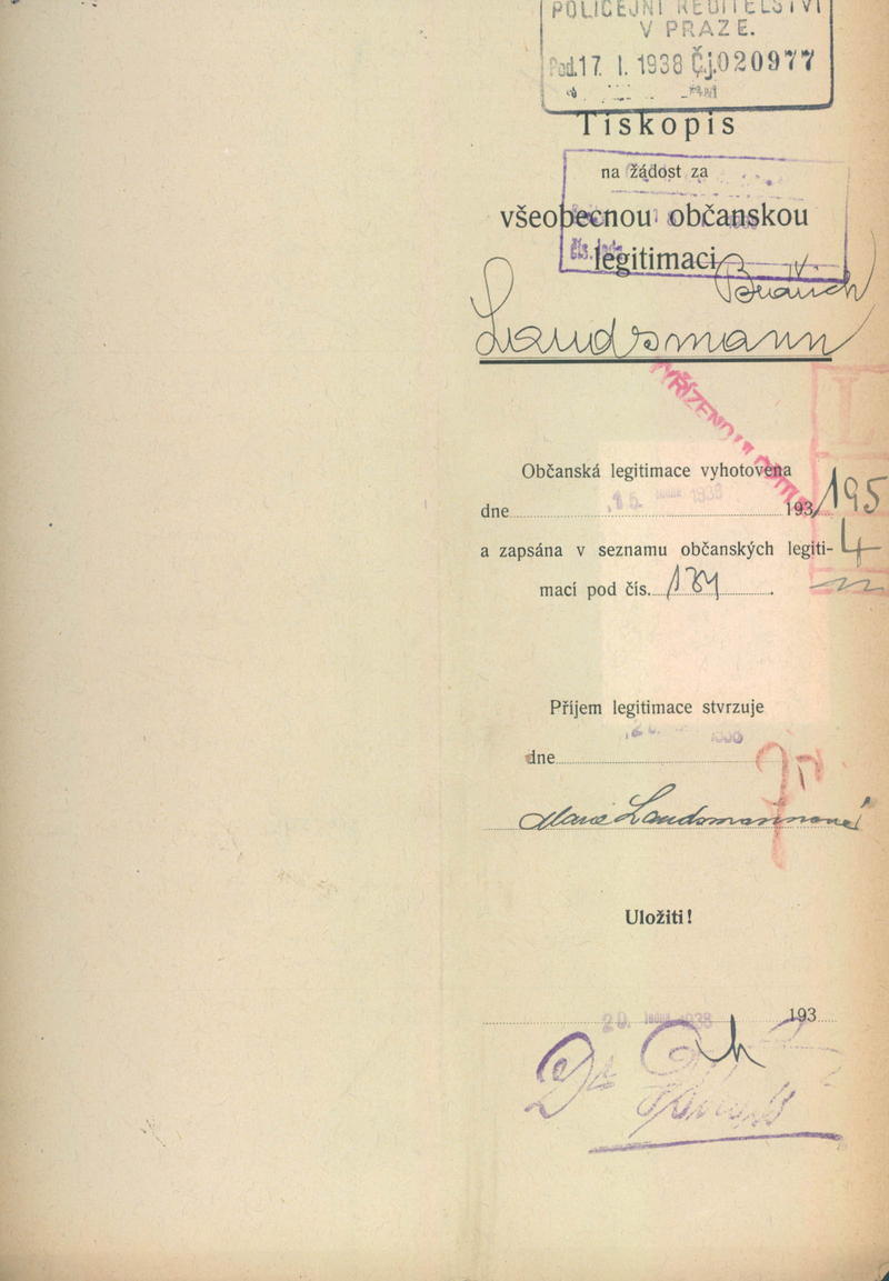 Landsmann Bedřich: Žádost o vydání občanské legitimace