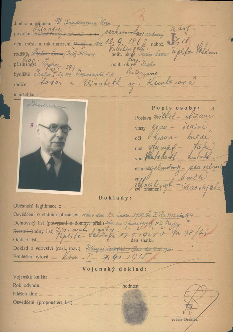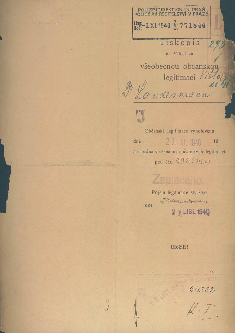 Landesmann Viktor: Žádost o vydání občanské legitimace