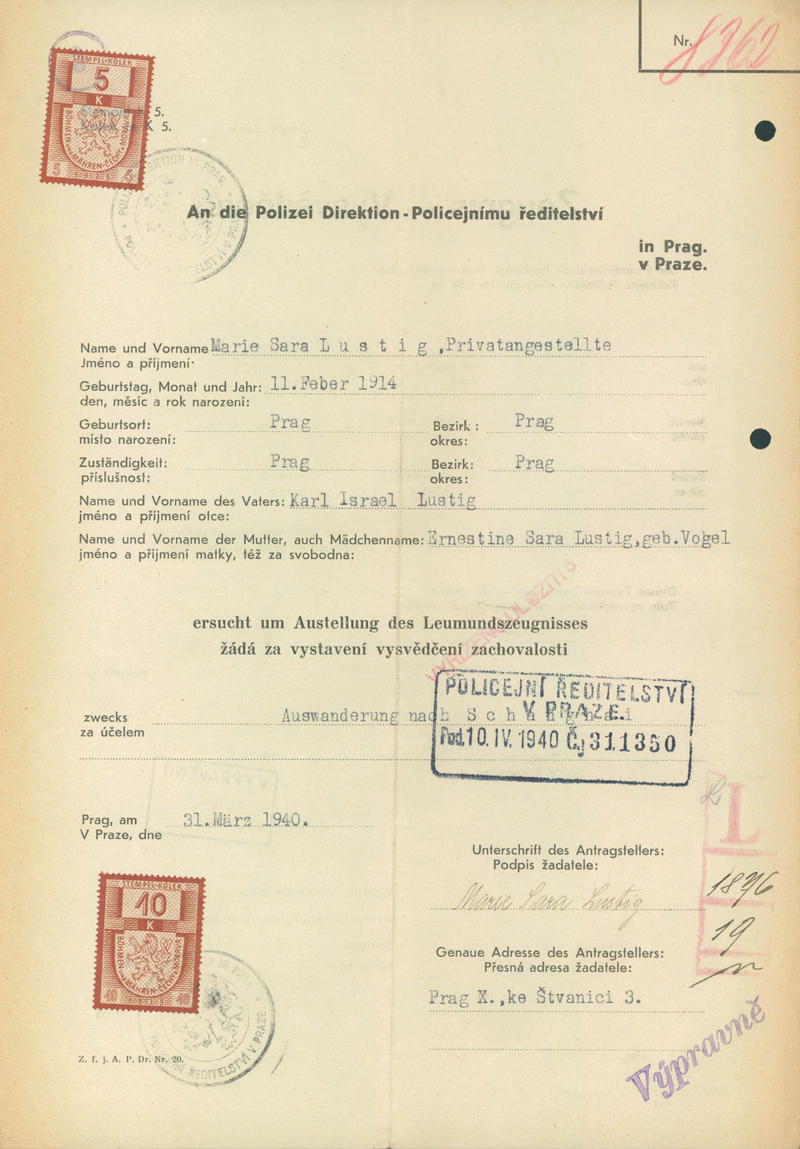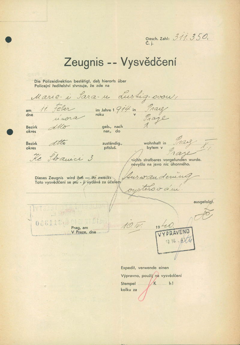 Lustigová Marie: Vysvědčení zachovalosti