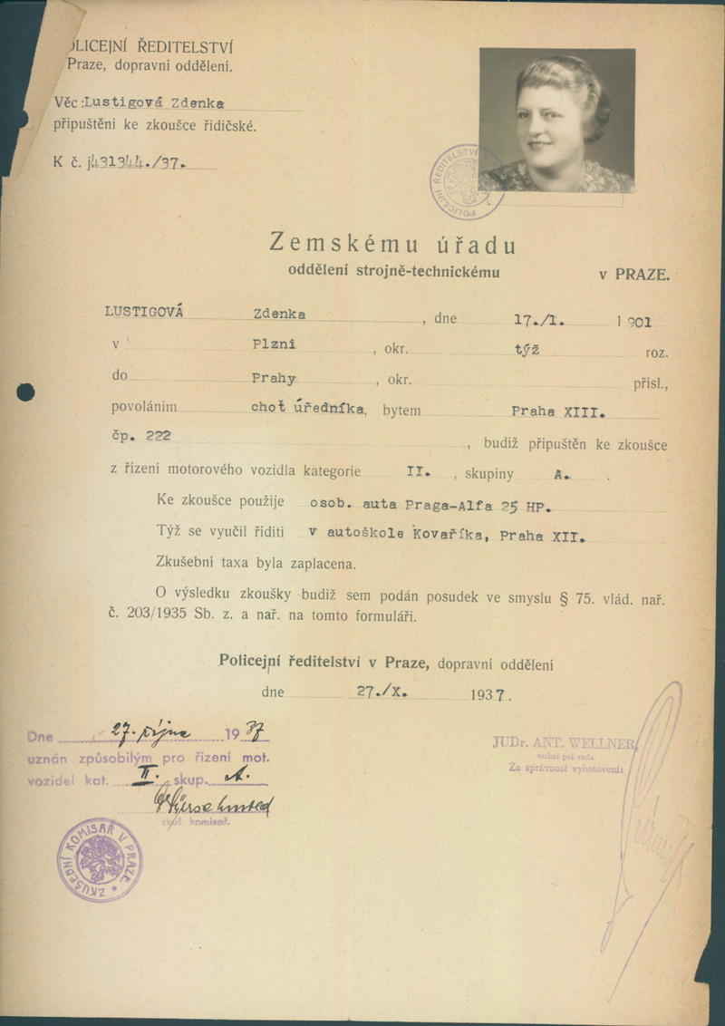 Lustigová Zdeňka: Připuštění k řidičské zkoušce
