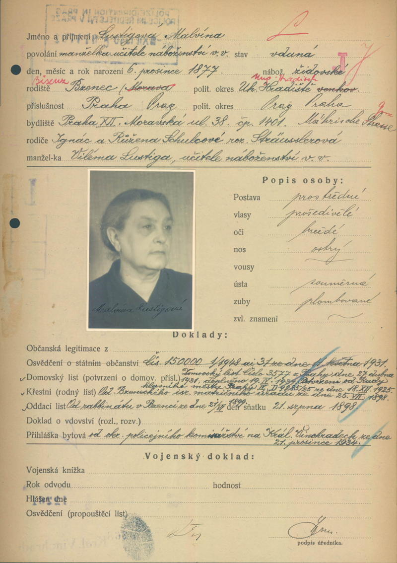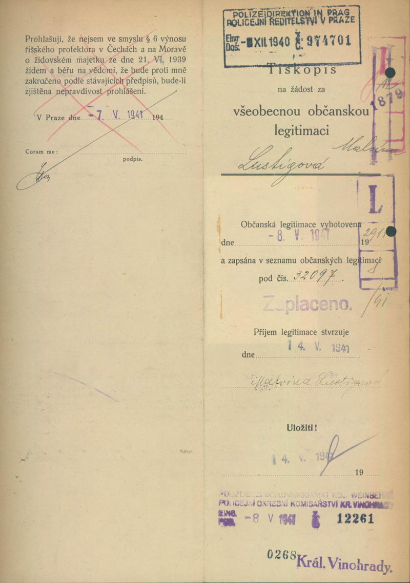 Lustigová Malvína: Žádost o vydání občanské legitimace