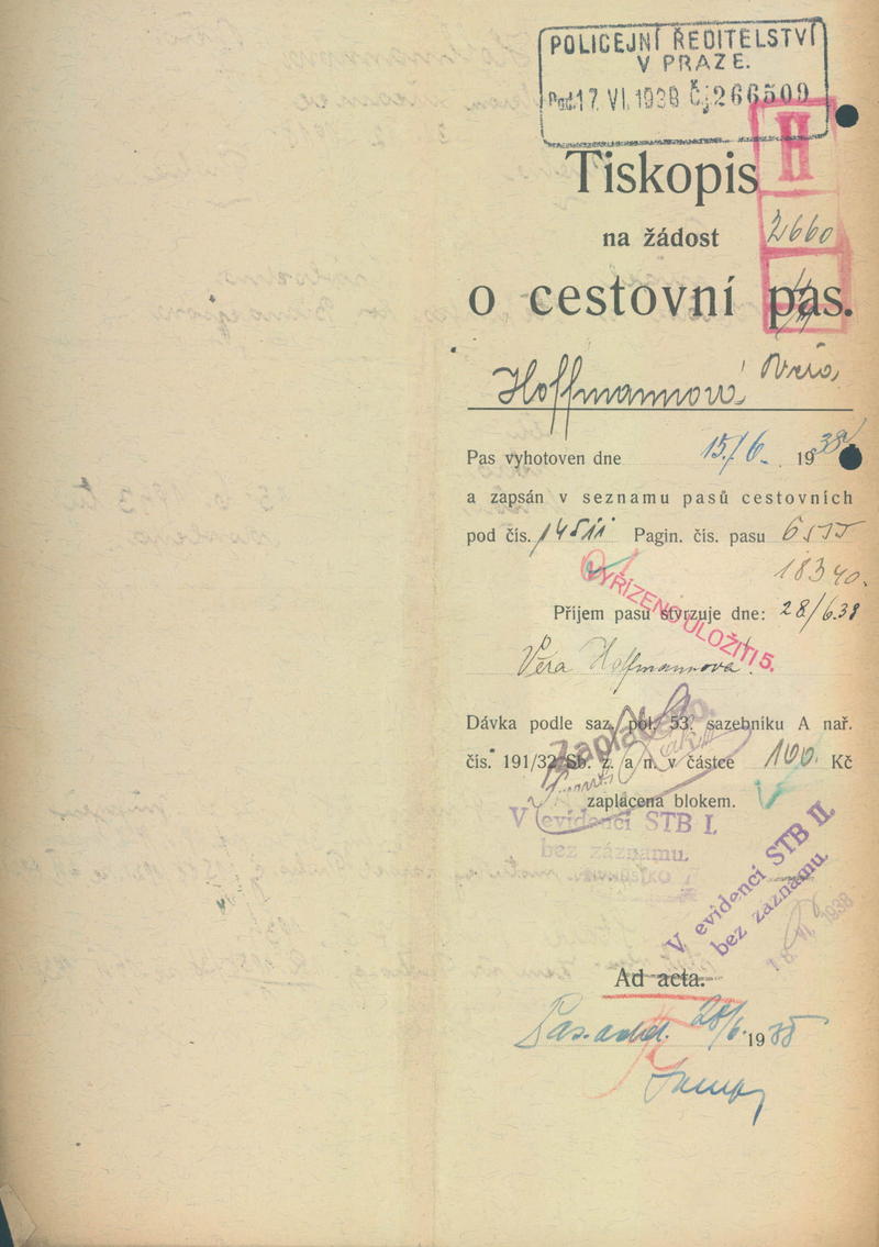 Langendorfová Věra: Žádost o vydání cestovního pasu