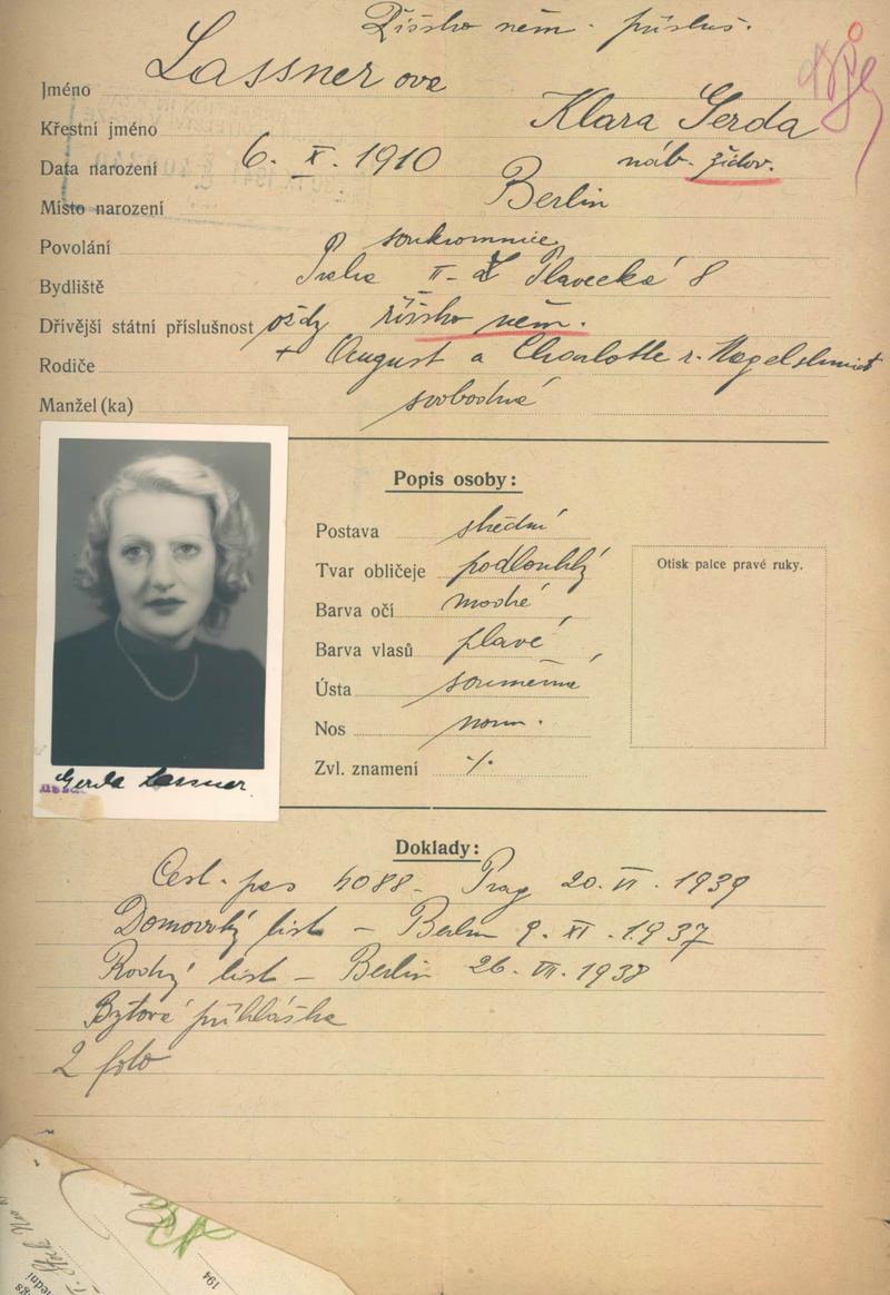 Lassnerová Klára Gerda: Žádost o vydání občanské legitimace