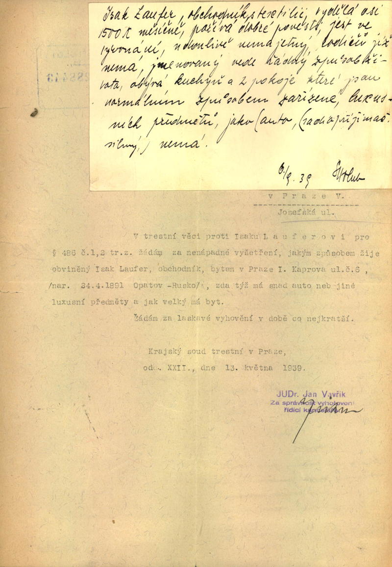 Laufer Isák: Šetření o osobě