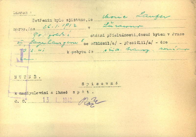 Laufer Mořic: Šetření o pobytu odtransportovaných Židů