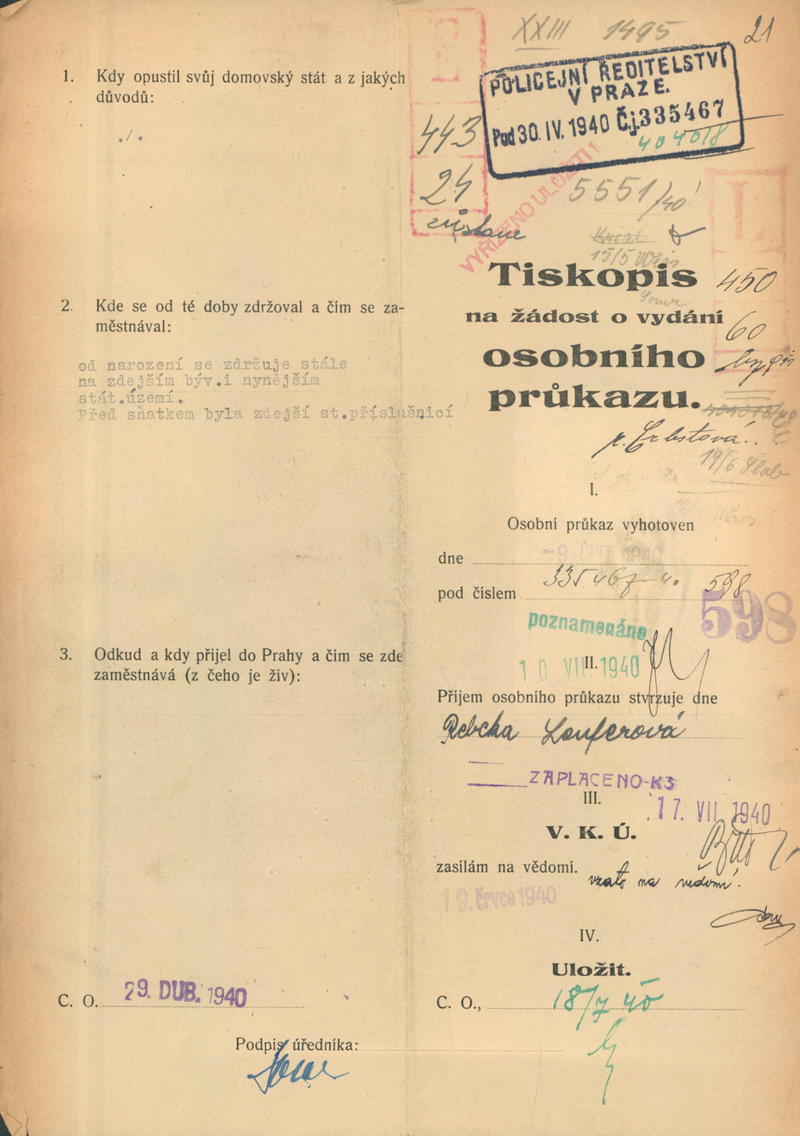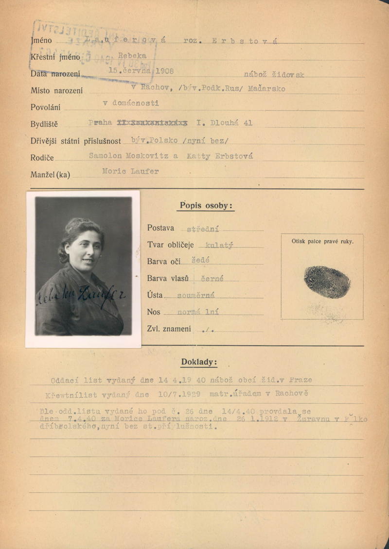 Lauferová Rebeka: Žádost o vydání občanské legitimace