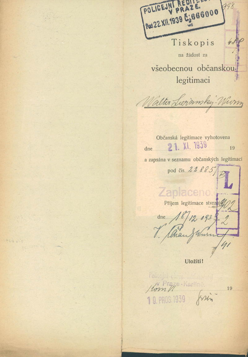 Lažanský-Wurm Valtr: Žádost o vydání občanské legitimace