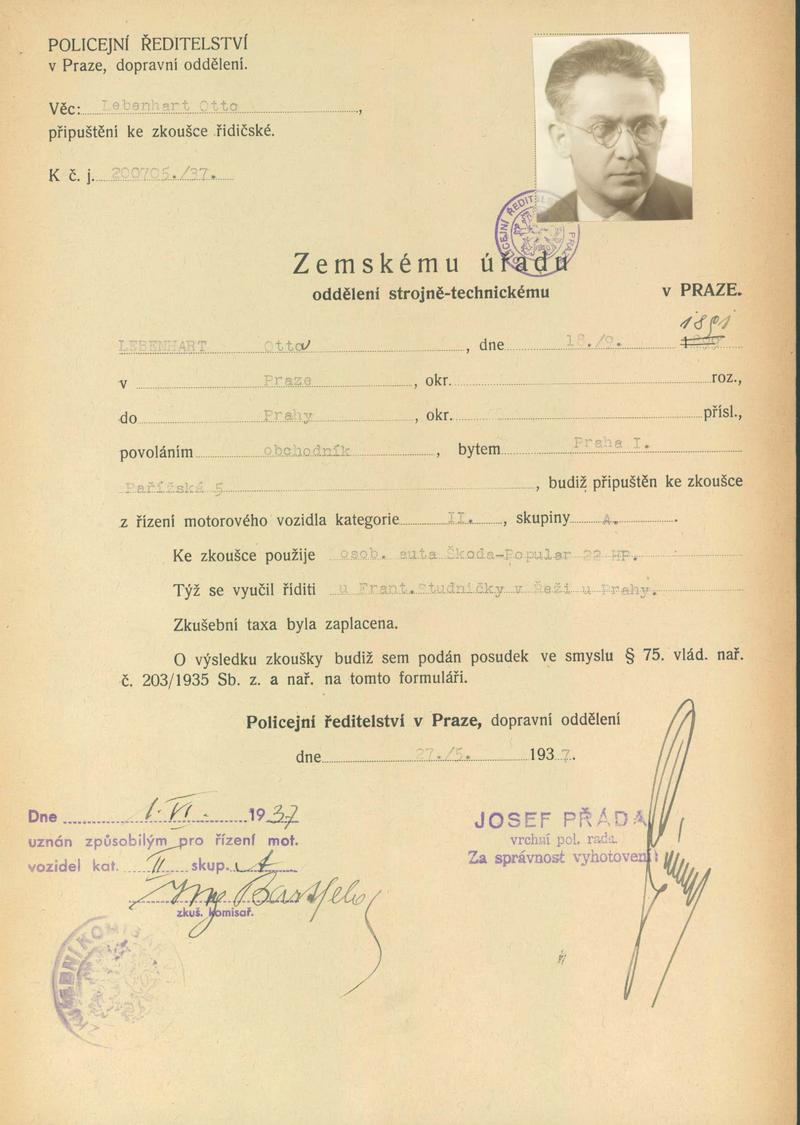 Lebenhart Otto: Připuštění k řidičské zkoušce