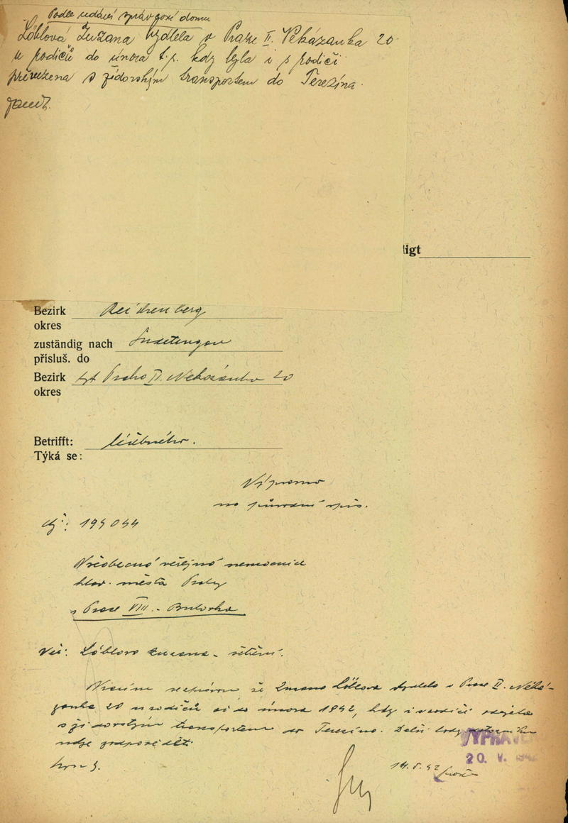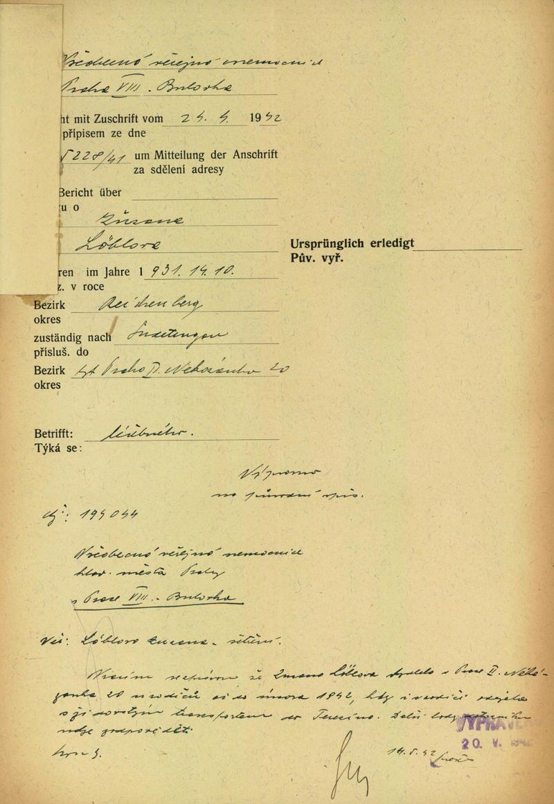 Löblová Zuzana: Šetření o pobytu odtransportovaných Židů