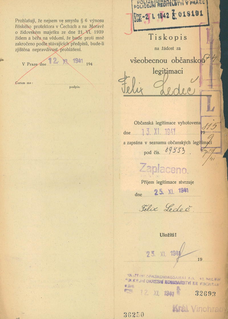 Ledeč Felix: Žádost o vydání občanské legitimace