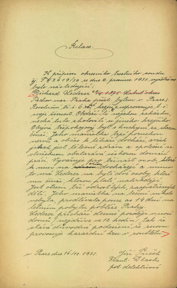 Lederer Richard: Šetření o osobě