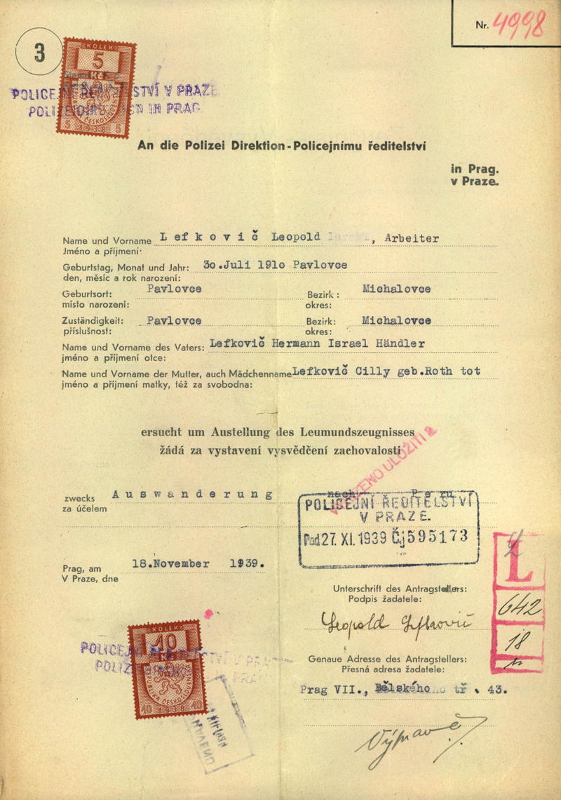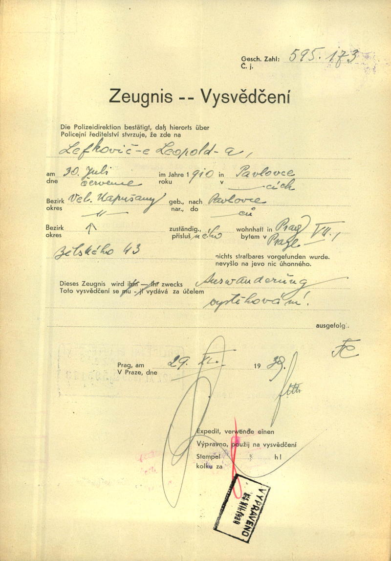Lefkovits Leopold: Vysvědčení zachovalosti