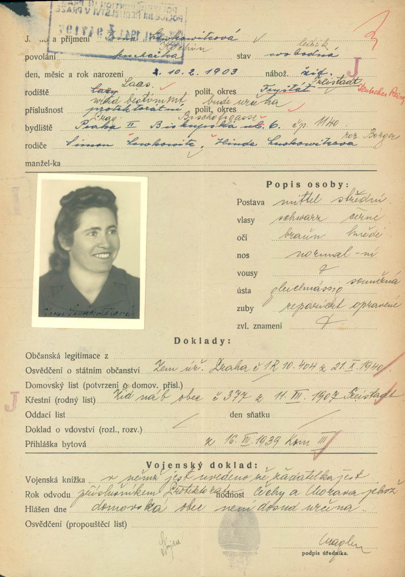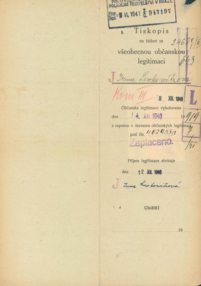 Lewkowitzová Irma: Žádost o vydání občanské legitimace