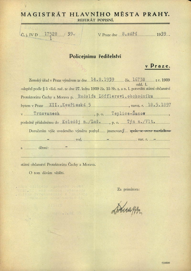 Löfler Rudolf: Ztráta státního občanství