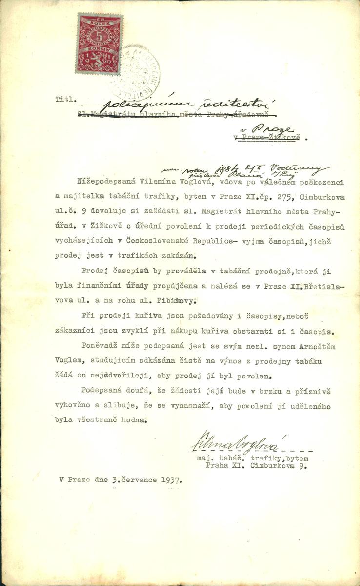 Voglová Vilma: Žádost o povolení k prodeji