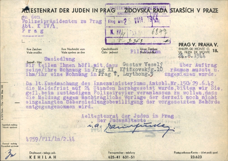 Veselý Gustav: Řízení ve věci přesídlení