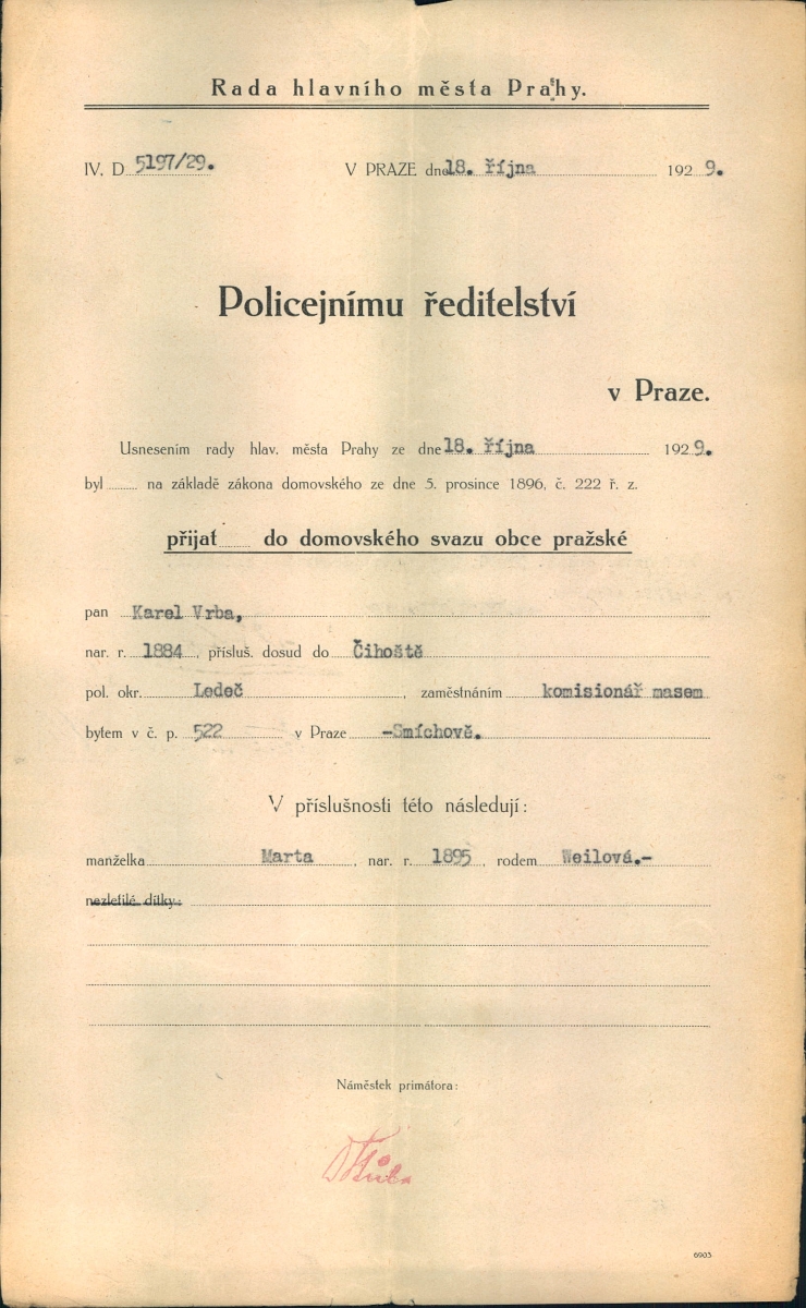 Vrba Karel: Nabytí domovského práva