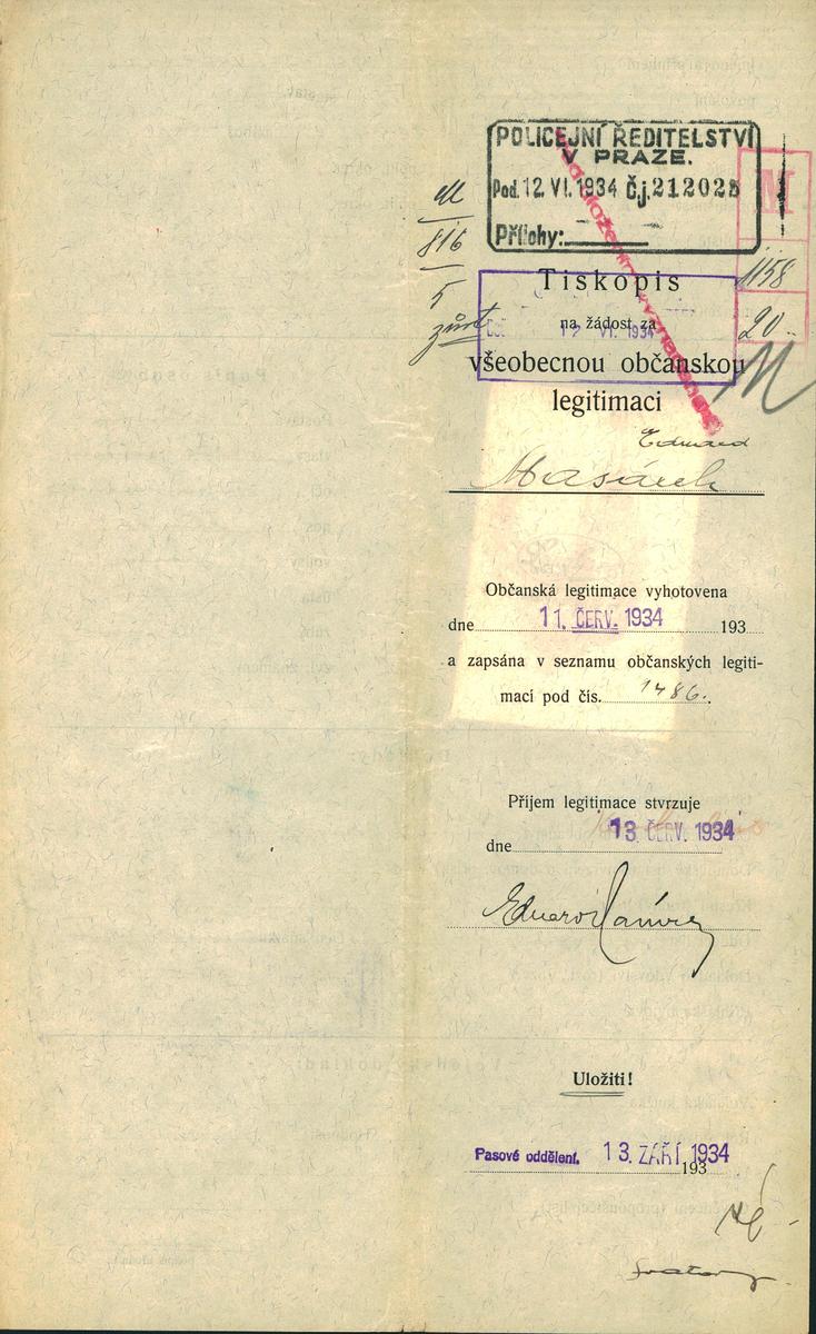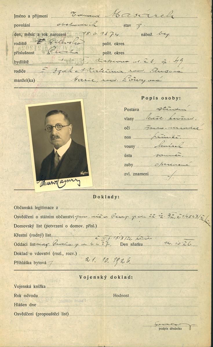 Masárek Eduard: Žádost o vydání občanské legitimace