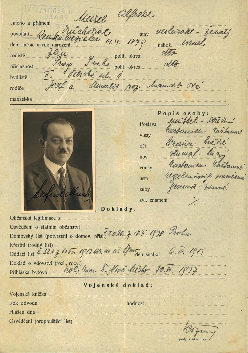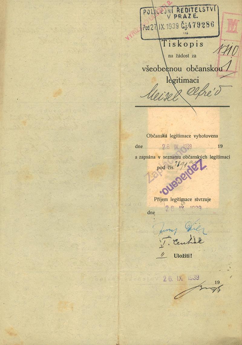 Meisel Alfred: Žádost o vydání občanské legitimace